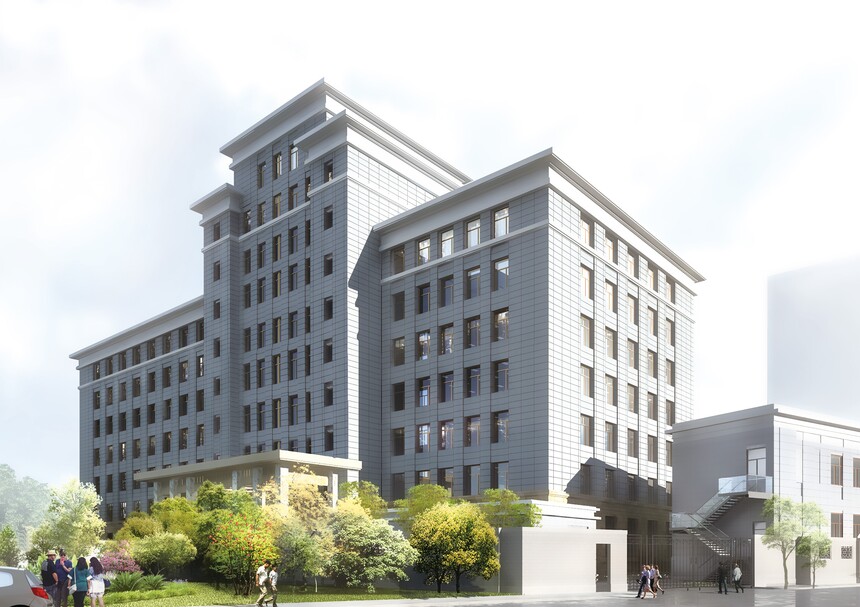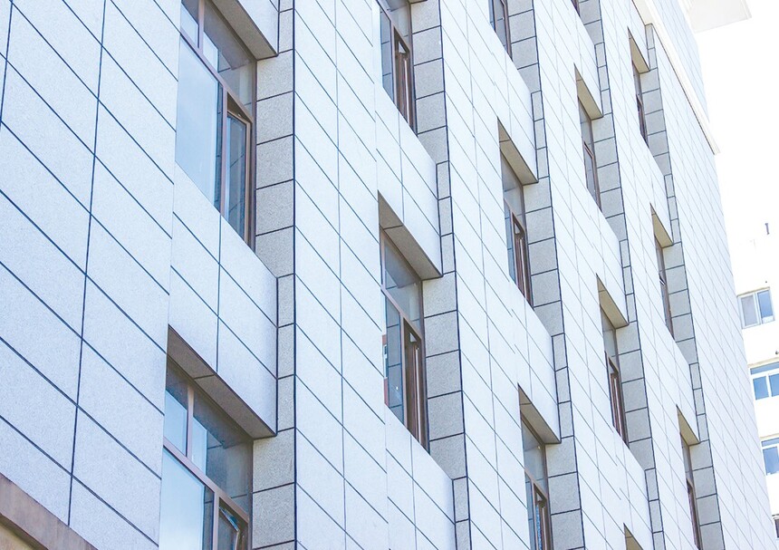 (2)项目概况 全国政协综合办公楼,原外墙饰面采用瓷砖与大理石,因所处位置比较特殊,不适合对瓷砖进行拆除,我公司在不拆除原有瓷砖的基础上进行保温装饰板的安装,该方案获得了专家的一致认可。